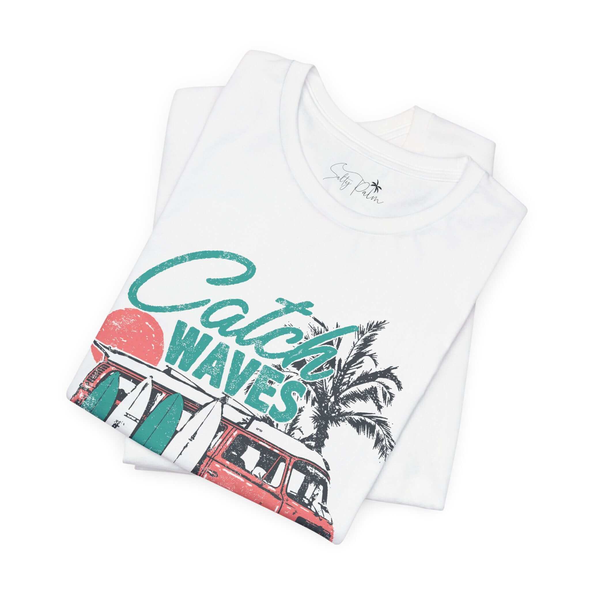 Ride the waves and leave the drama behind with our Catch Waves Not Feelings White Graphic Tee. Made for surfers and beach lovers, this tee features a bold graphic and comfortable fit.