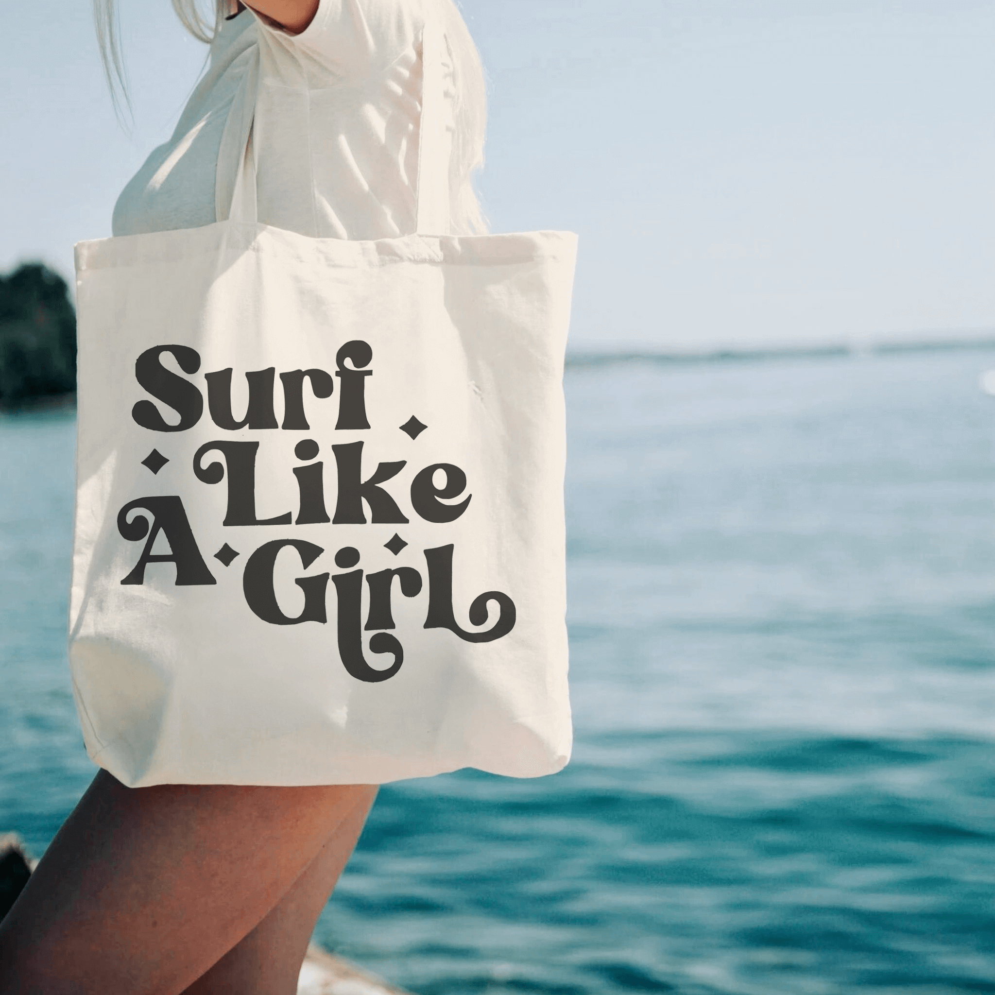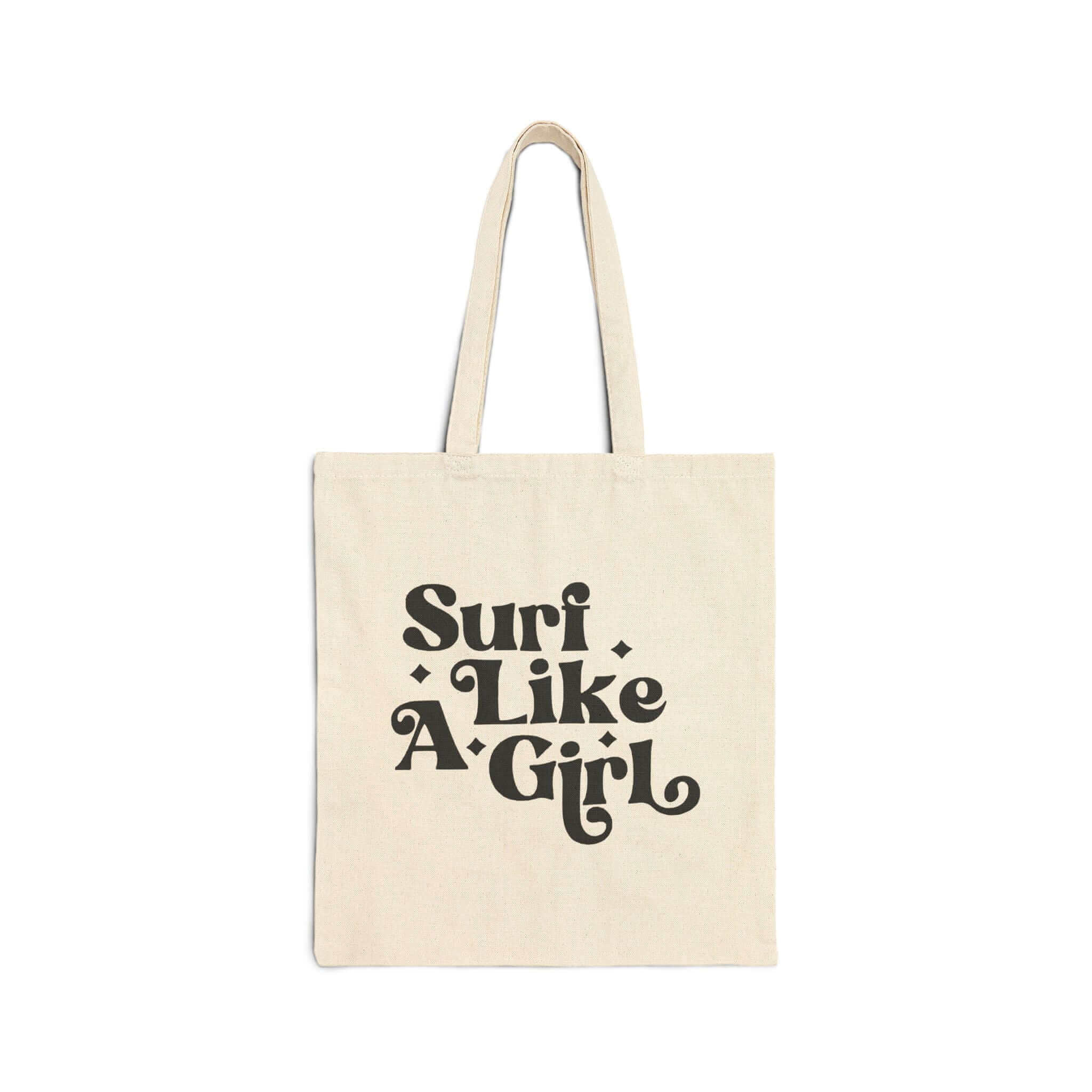 Get ready to hit the beach in style with our Surf Like a Girl Canvas Tote Bag. Made from durable canvas, this tote is perfect for carrying all your beach essentials.